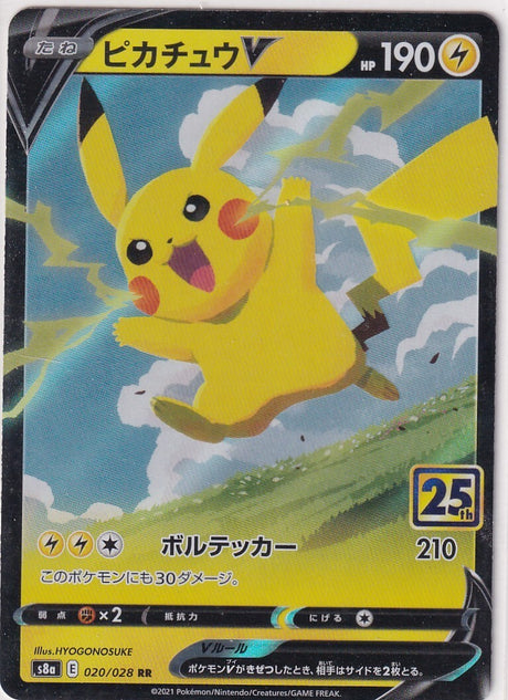 JAPANESE POKEMON CARD PIKACHU V 020/028 25TH ANNIVERSARY S8a NM