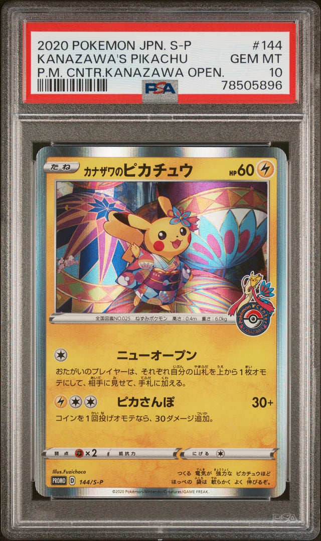 PSA 10 GEM MINT JAPANESE POKEMON 2020 KANAZAWA'S PIKACHU 144/S-P PROMO