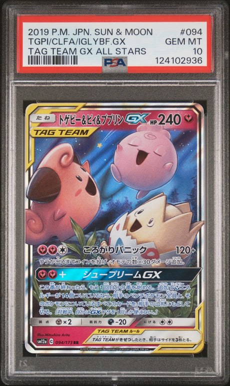 PSA 10 GEM MINT JAPANESE POKEMON 2019 Togepi & Cleffa Igglybuff GX 094/173 SM12a