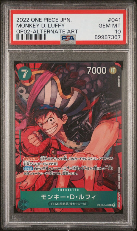 PSA 10 GEM MINT JAPANESE ONE PIECE 2022 MONKEY D. LUFFY OP02-041 ALTERNATE ART