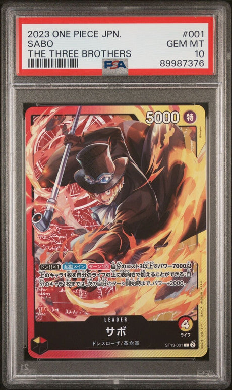 PSA 10 GEM MINT JAPANESE ONE PIECE 2023 SABO ST13-001 THE THREE BROTHERS
