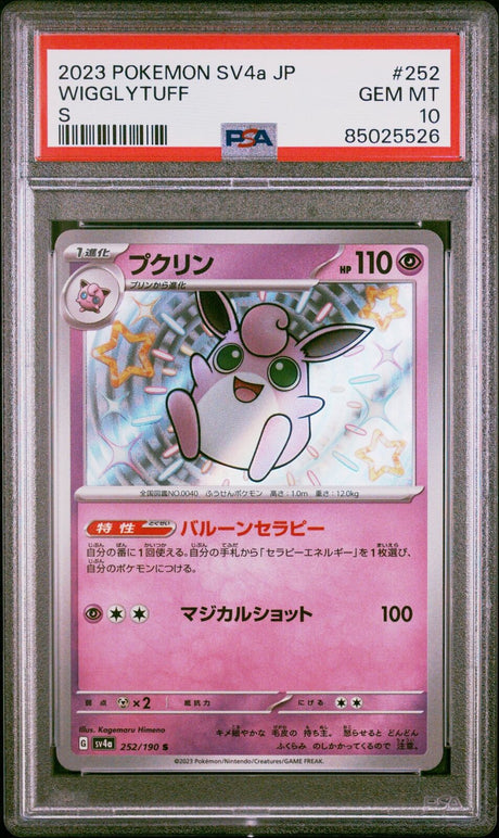 - PKMhobby - PSA 10 GEM MINT JAPANESE POKEMON 2023 WIGGLYTUFF 252/190 SHINY TREASURE S SV4a Regular price $41.50Unit price /UnavailableVery low stock (1 unit)