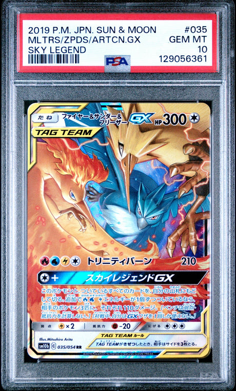 PSA 10 GEM MINT Japanese Pokemon 2019 Moltres Zapdos Articuno GX 035/054 SM10b