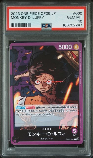 - PKMhobby - PSA 10 GEM MINT JAPANESE ONE PIECE 2023 MONKEY D. LUFFY OP05-060 ALT. ART Regular price $29.50Unit price /UnavailableVery low stock (1 unit)