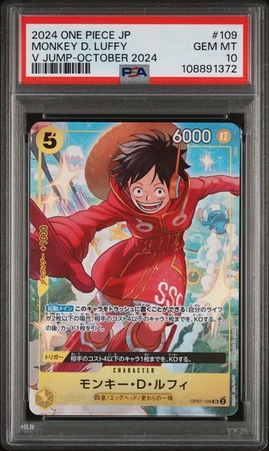 - PKMhobby - PSA 10 GEM MINT Japanese ONE PIECE 2024 Monkey D. Luffy OP07-109 V Jump October Regular price $75.00Unit price /UnavailableVery low stock (1 unit)