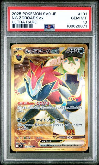 - PKMhobby - PSA 10 GEM MINT JAPANESE POKEMON 2025 N's Zoroark ex 131/100 Battle Partners SV9 Regular price $62.50Unit price /UnavailableVery low stock (1 unit)