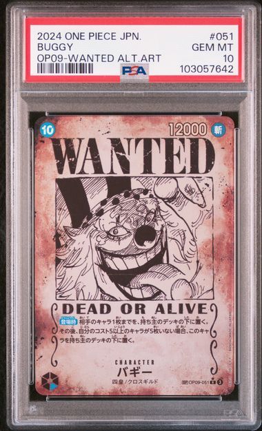 - PKMhobby - PSA 10 GEM MINT Japanese One Piece 2024 Buggy OP09-051 EMPERORS IN THE NEW WORLD Regular price $98.88Unit price /UnavailableVery low stock (1 unit)