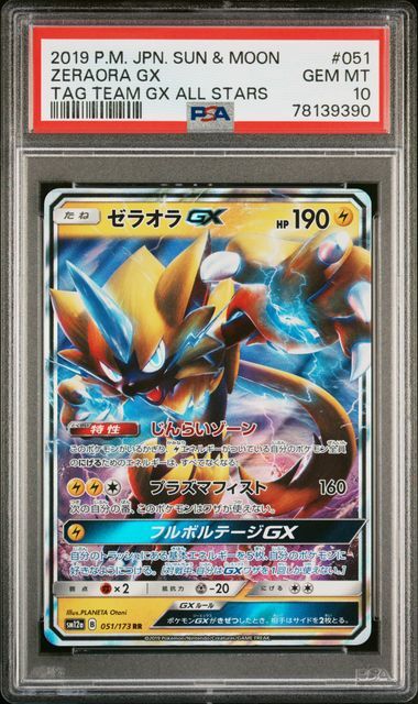 - PKMhobby - PSA 10 GEM MINT JAPANESE POKEMON 2019 ZERAORA GX 051/173 TAG TEAM GX SM12a Regular price $39.99Unit price /UnavailableVery low stock (1 unit)