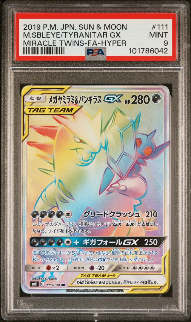 PSA 9 MINT JAPANESE POKEMON 2019 Mega Sableye & Tyranitar GX 111/094 SM11