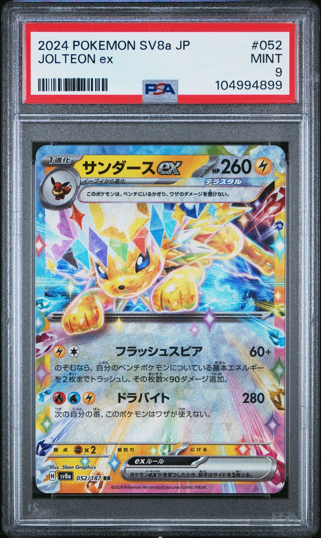 PSA 9 MINT JAPANESE POKEMON CARD Jolteon EX 052/187 Terrastal Festival SV8a