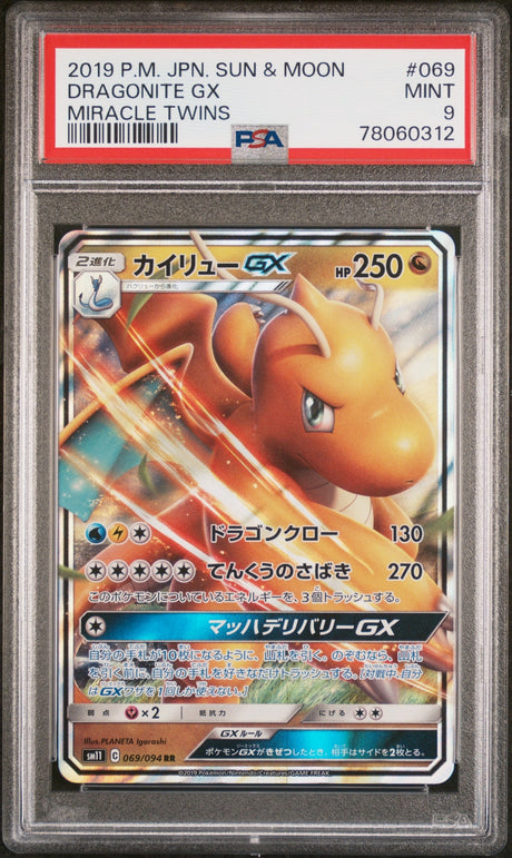 PSA 9 MINT JAPANESE POKEMON 2019 DRAGONITE GX 069/094 MIRACLE TWINS SM11