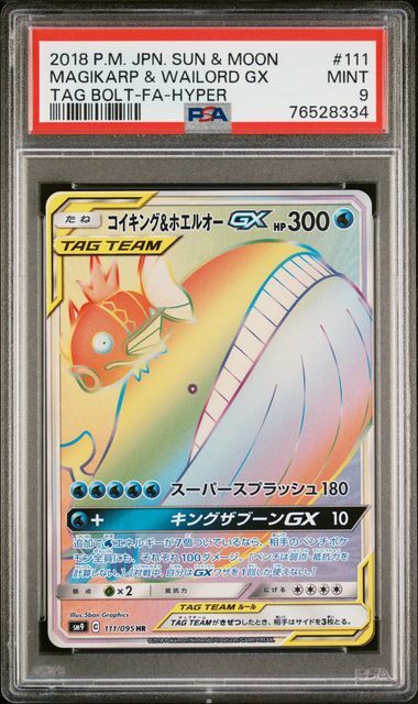 PSA 9 MINT JAPANESE POKEMON 2018 MAGIKARP & WAILORD GX 111/095 TAG BOLT SM9
