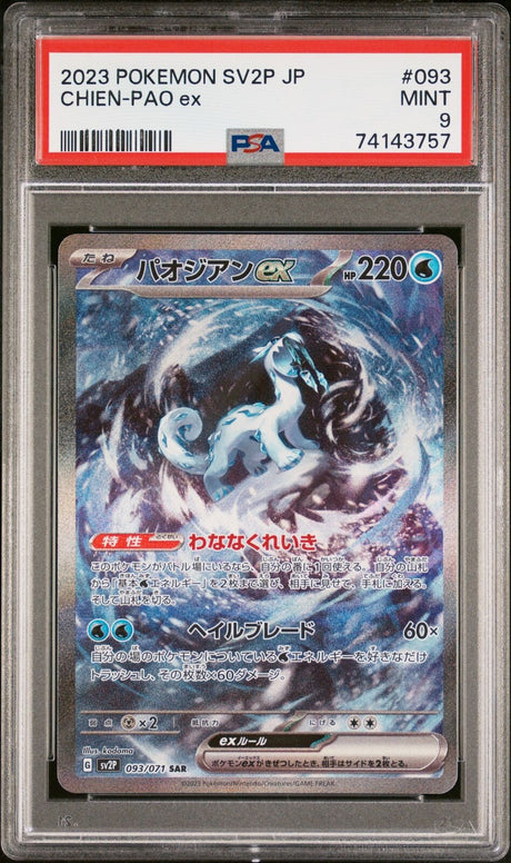 - PKMhobby - PSA 9 MINT JAPANESE POKEMON 2023 CHIEN-PAO ex 093/071 SNOW HAZARD SV2P Regular price $49.99Unit price /Unavailable