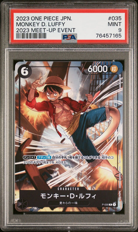 - PKMhobby - PSA 9 MINT JAPANESE ONE PIECE 2023 MONKEY D. LUFFY P-035 PROMOS 2023 MEET EVENT Regular price $18.99Unit price /Unavailable