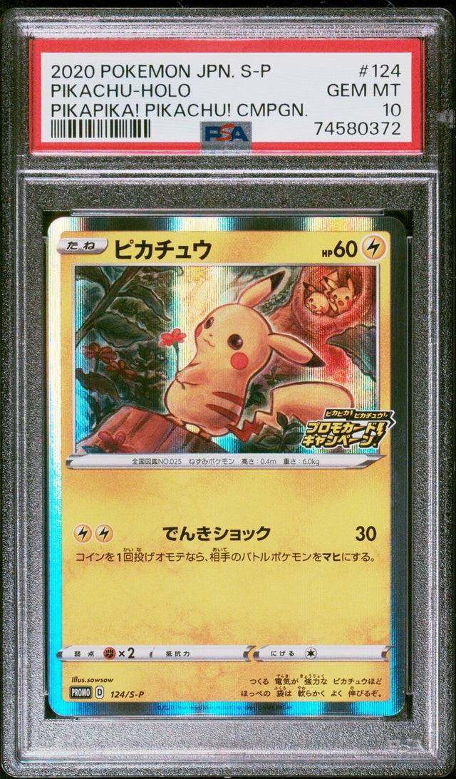 PSA 10 GEM MINT JAPANESE POKEMON 2020 PIKACHU 124/S-P CAMPAIGN PROMO PIKAPIKA!