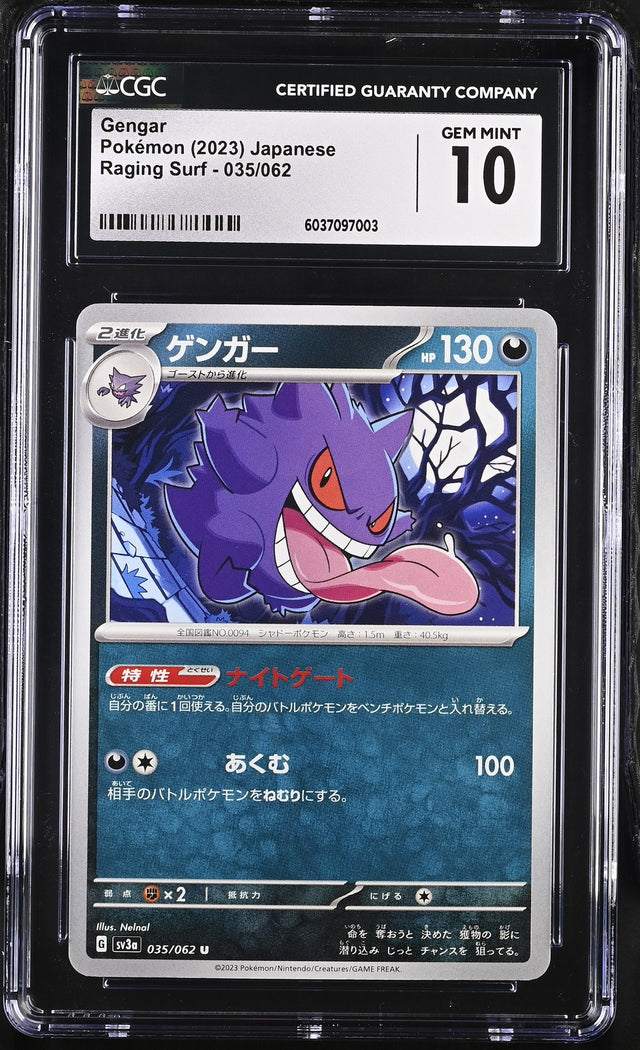 CGC 10 GEM MINT Japanese Pokémon 2023 Gengar 035/062 Raging Surf SV3a is backordered and will ship as soon as it is back in stock.