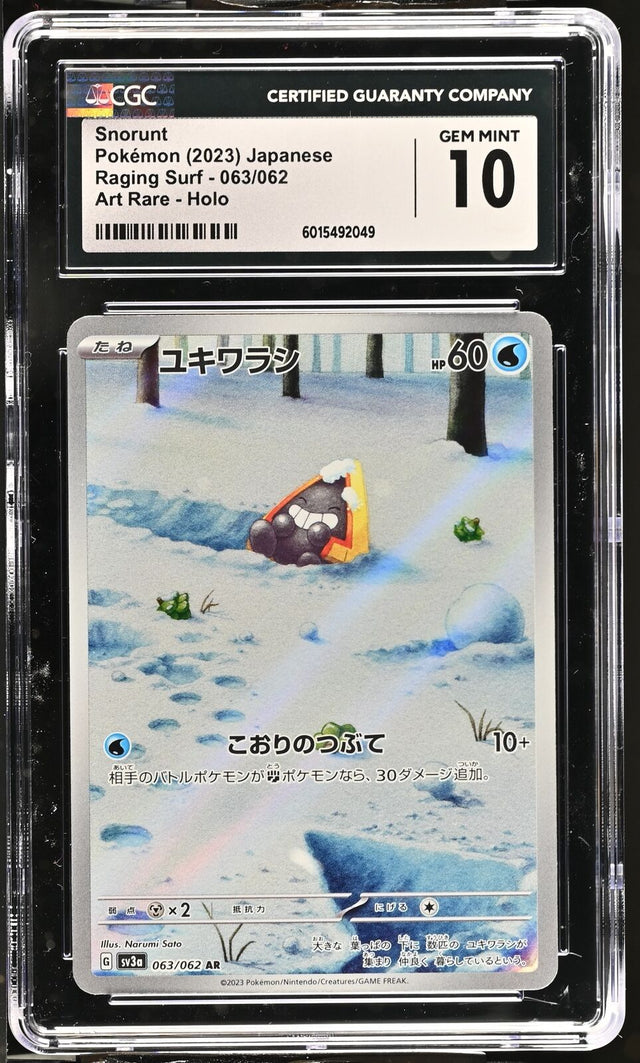 CGC 10 GEM MINT JAPANESE POKEMON 2023 SNORUNT 063/062 RAGING SURF ART RARE SV3a