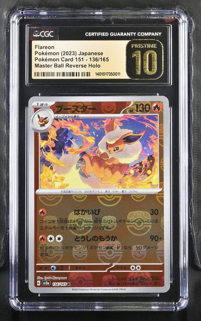 CGC 10 PRISTINE Japanese Pokemon 2023 Flareon 136/165 MASTER BALL 151 Sv2a is backordered and will ship as soon as it is back in stock.