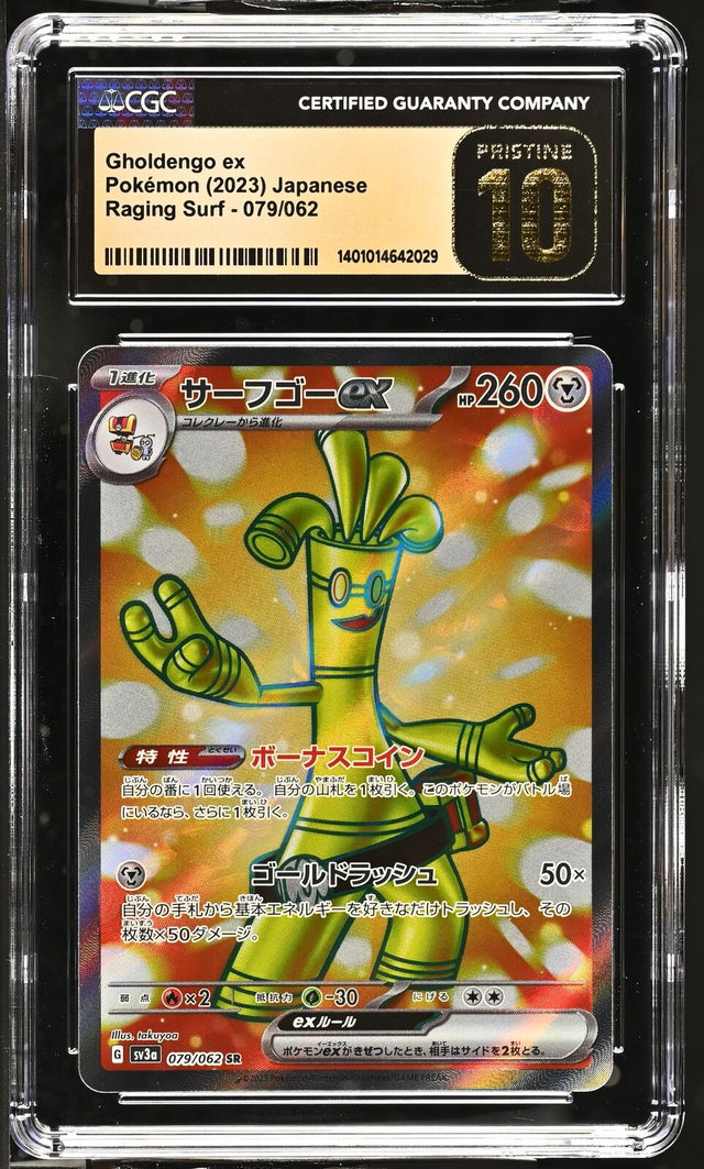 CGC 10 PRISTINE Japanese Pokemon 2023 Gholdengo ex 079/062 Raging Surf Sv3a is backordered and will ship as soon as it is back in stock.