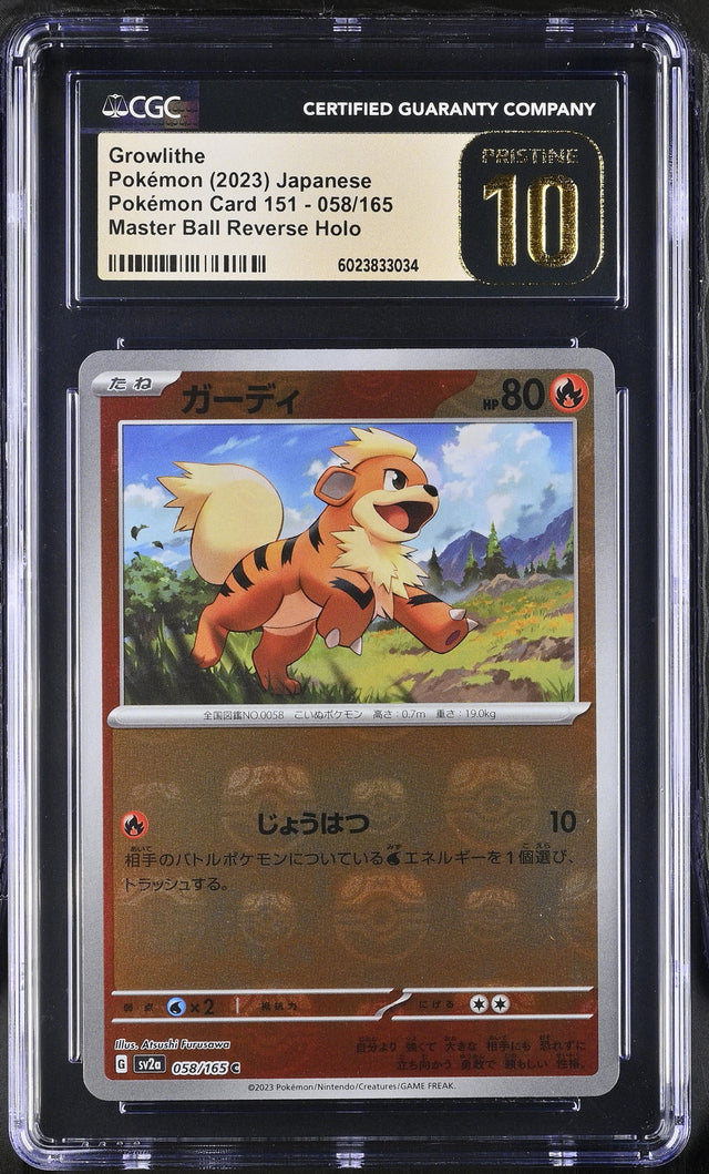 CGC 10 PRISTINE JAPANESE POKEMON 2023 GROWLITHE 058/165 REVERSE HOLO SV2a