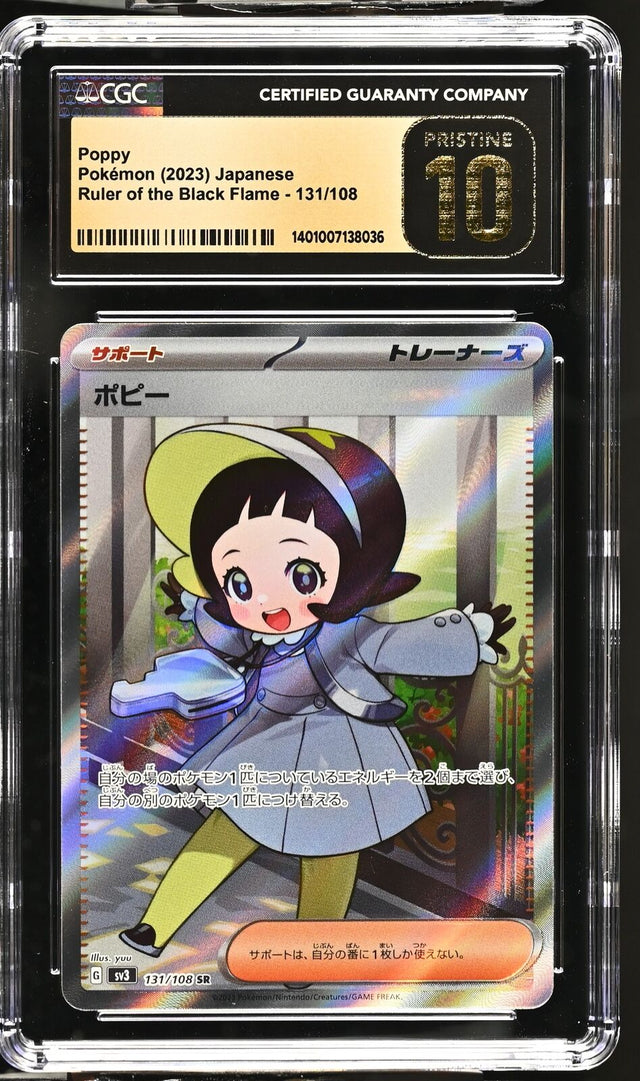 CGC 10 PRISTINE Japanese Pokemon 2023 Poppy 131/108 Ruler of the Black Flame SV3