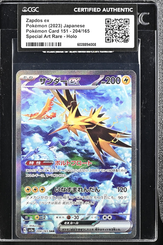 JAPANESE POKEMON Zapdos ex 204/165 SAR SV2a CGC CERTIFIED AUTHENTIC