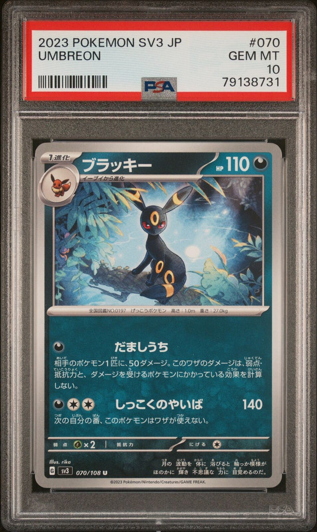 PSA 10 GEM MINT JAPANESE POKEMON 2023 UMBREON 070/108 BLACK FLAME SV3