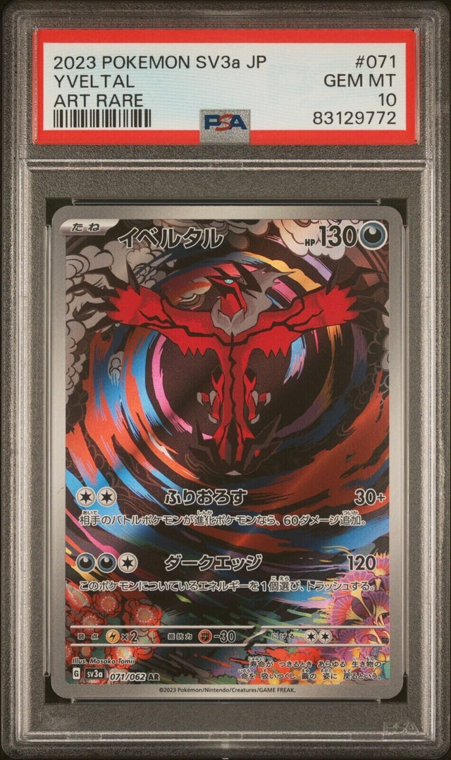 PSA 10 GEM MINT JAPANESE POKEMON 2023 YVELTAL 071/062 RAGING SURF ART RARE SV3a is backordered and will ship as soon as it is back in stock.
