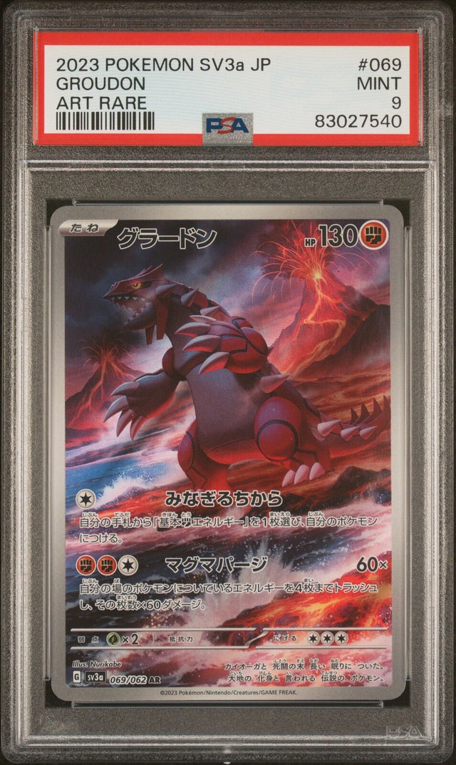 PSA 9 MINT JAPANESE POKEMON 2023 GROUDON 069/062 RAGING SURF ART RARE SV3a