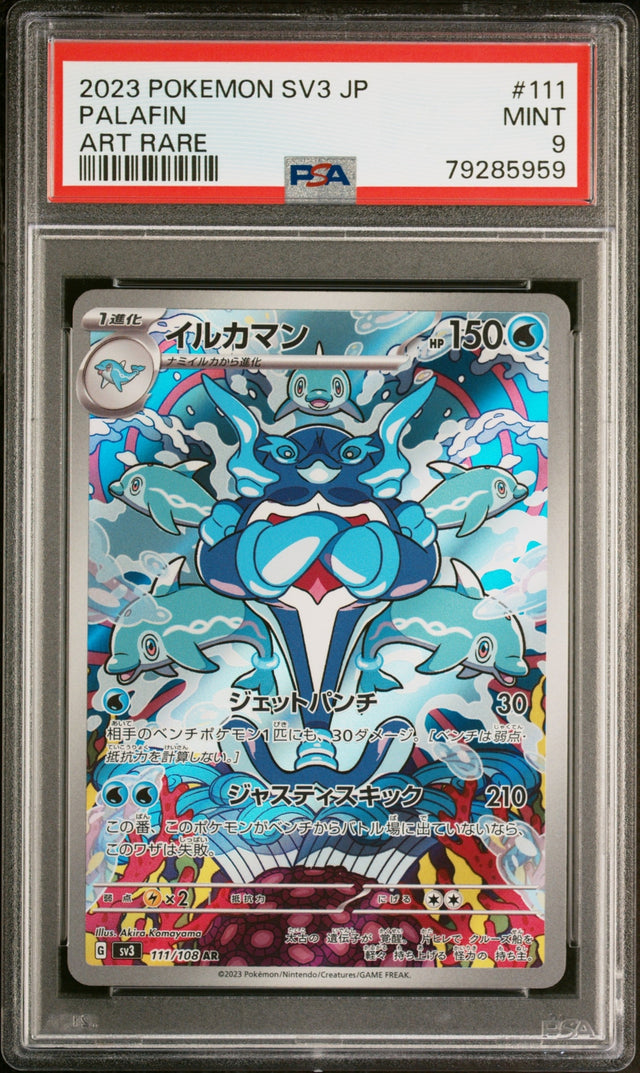 PSA 9 MINT JAPANESE POKEMON 2023 PALAFIN 111/108 BLACK FLAME ART RARE SV3