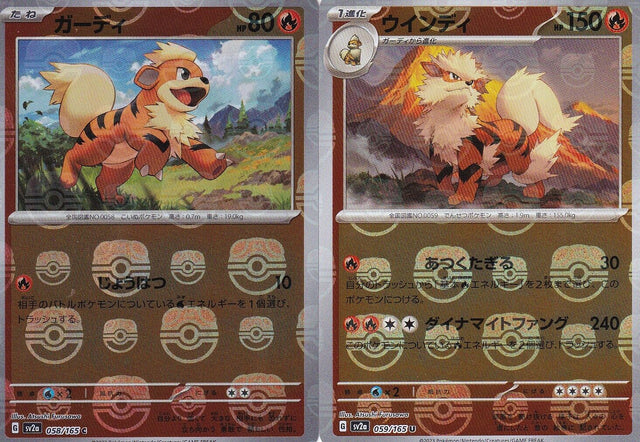 SET 2 Japanese Pokemon CARD GROWLITHE 058/165 ARCANINE 059/165 MASTER SV2a