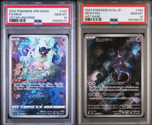 Set 2 PSA 10 GEM MINT Japanese Pokemon Mew & Mewtwo 183/172 S12a 183/165 SV2a is backordered and will ship as soon as it is back in stock.