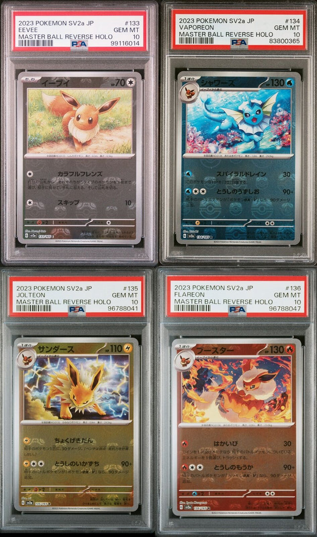 SET 4 PSA 10 Japanese Pokemon EEVEE VAPOREON JOLTEON FLAREON SV2a MASTER BALL