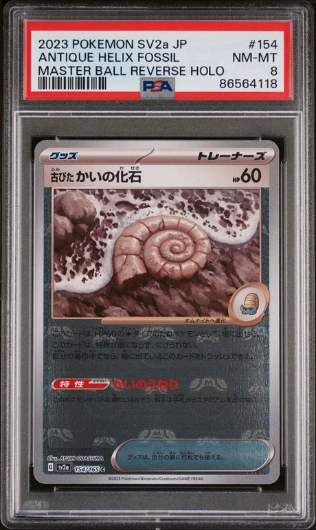 PSA 8 NM-MT Japanese Pokemon 2023 OLD HELIX FOSSIL 154/165 MASTER BALL SV2a