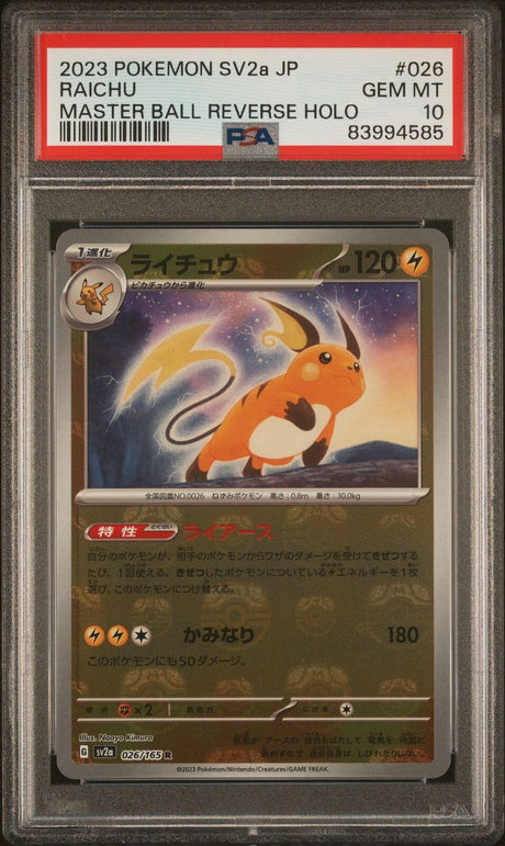 PSA 10 GEM MINT JAPANESE POKEMON 2023 RAICHU 026/165 MASTER BALL 151 Sv2a
