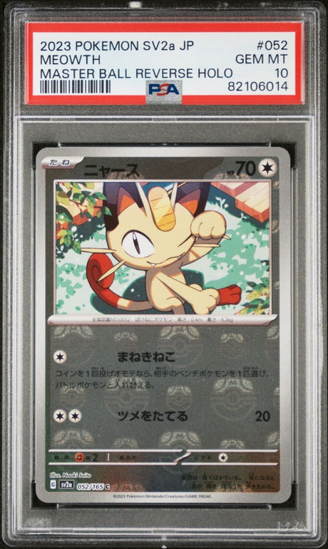 PSA 10 GEM MINT JAPANESE POKEMON 2023 MEOWTH 052/165 MASTER BALL 151 SV2a