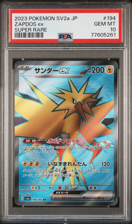 PSA 10 GEM MINT JAPANESE POKEMON 2023 ZAPDOS ex 194/165 POKEMON 151 SV2a