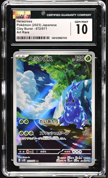 CGC 10 GEM MINT Japanese Pokemon 2023 Heracross 072/071 Clay Burst Sv2D Art Rare