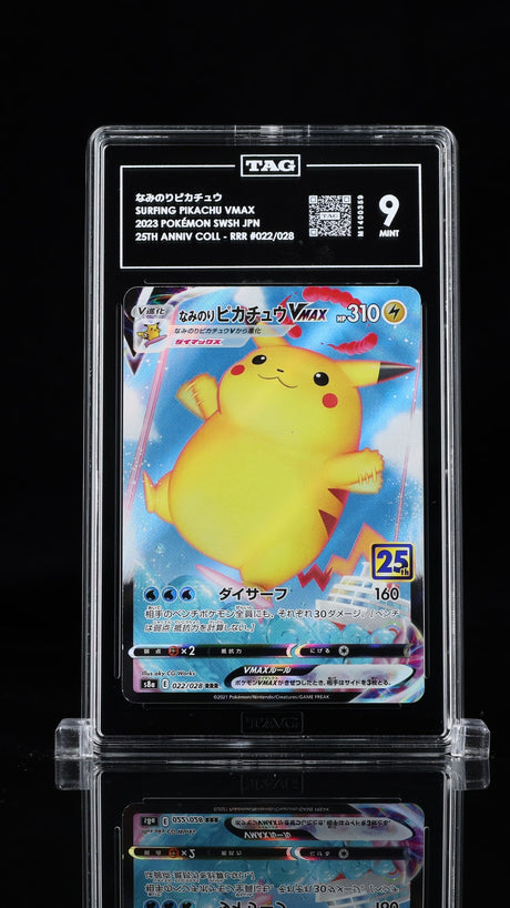 TAG 9 MINT JAPANESE POKEMON 2021 SURFING PIKACHU VMAX 022/028 25TH S8a