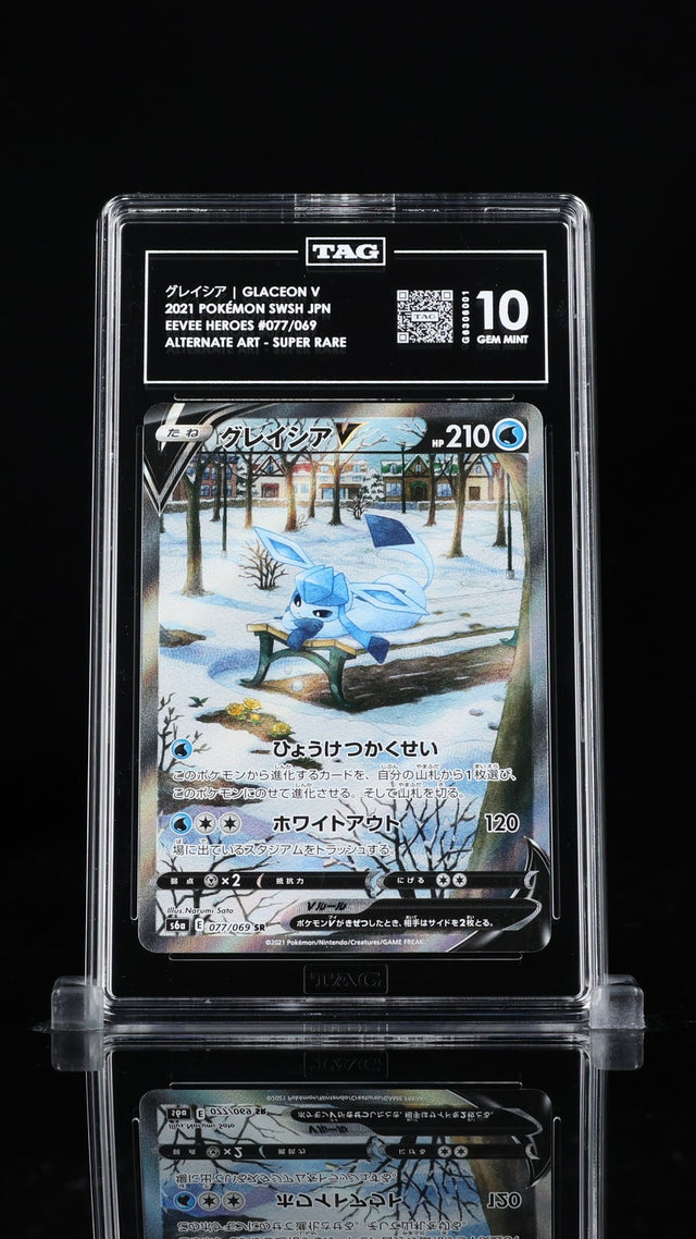 TAG 10 GEM MINT JAPANESE POKEMON 2021 FA/GLACEON V 077/069 EEVEE HEROES S6a
