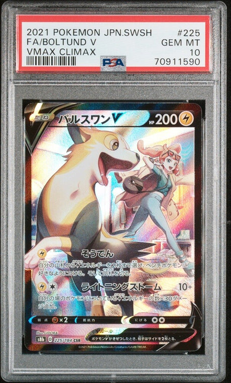 PSA 10 GEM MINT JAPANESE POKEMON 2021 BOLTUND V 225/184 VMAX CLIMAX S8b