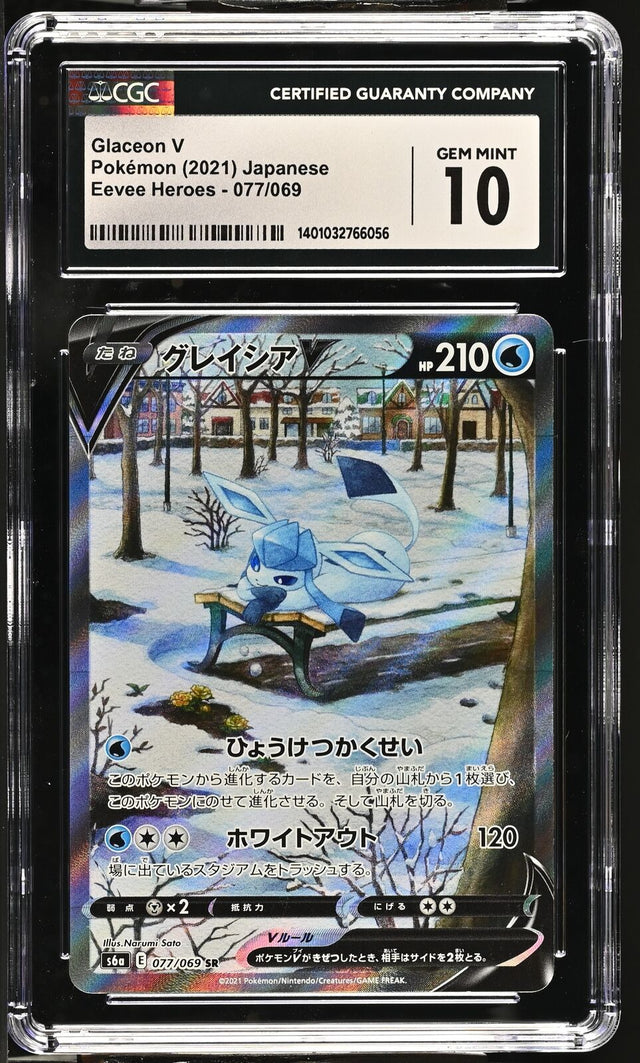 CGC 10 GEM MINT Japanese Pokemon 2021 Glaceon V 077/069 Eevee Heroes S6a is backordered and will ship as soon as it is back in stock.