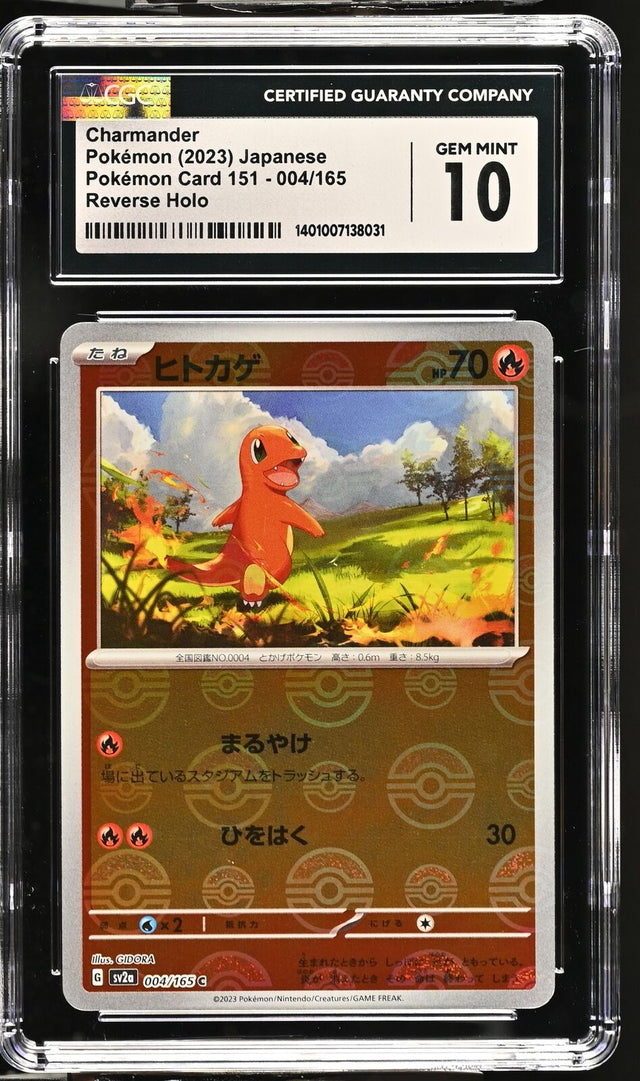 CGC 10 GEM MINT JAPANESE POKEMON 2023 CHARMANDER 004/165 REVERSE HOLO SV2a