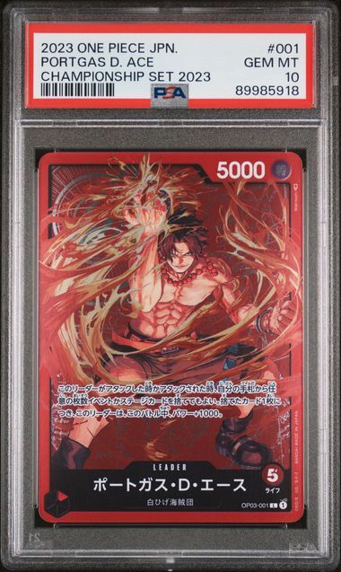 PSA 10 GEM MINT JAPANESE ONE PIECE 2023 PORTGAS D. ACE OP03-001 CHAMPIONSHIP SET