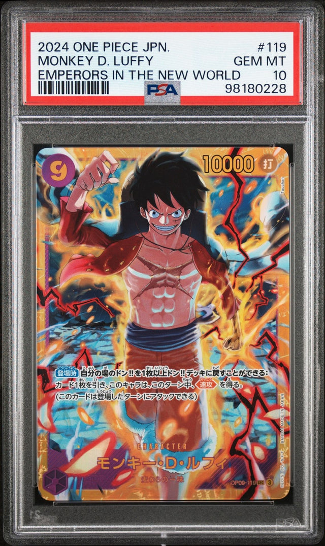 PSA 10 GEM MINT JAPANESE ONE PIECE 2024 Monkey D. Luffy OP09-119 A NEW EMPEROR is backordered and will ship as soon as it is back in stock.