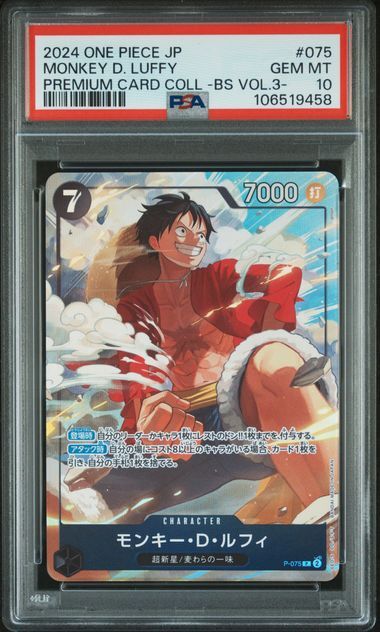 PSA 10 GEM MINT Japanese One Piece 2024 Monkey D. Luffy P-075 Selection Vol. 3