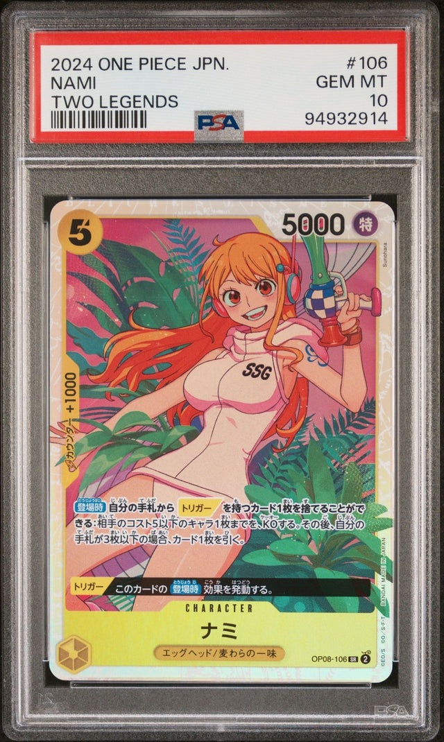 PSA 10 GEM MINT JAPANESE ONE PIECE 2024 Nami OP08-106 Two Legends SR
