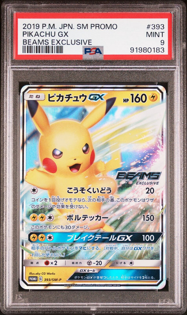 PSA 9 MINT JAPANESE POKEMON 2019 PIKACHU GX 393/SM-P BEAMS EXCLUSIVE PROMO