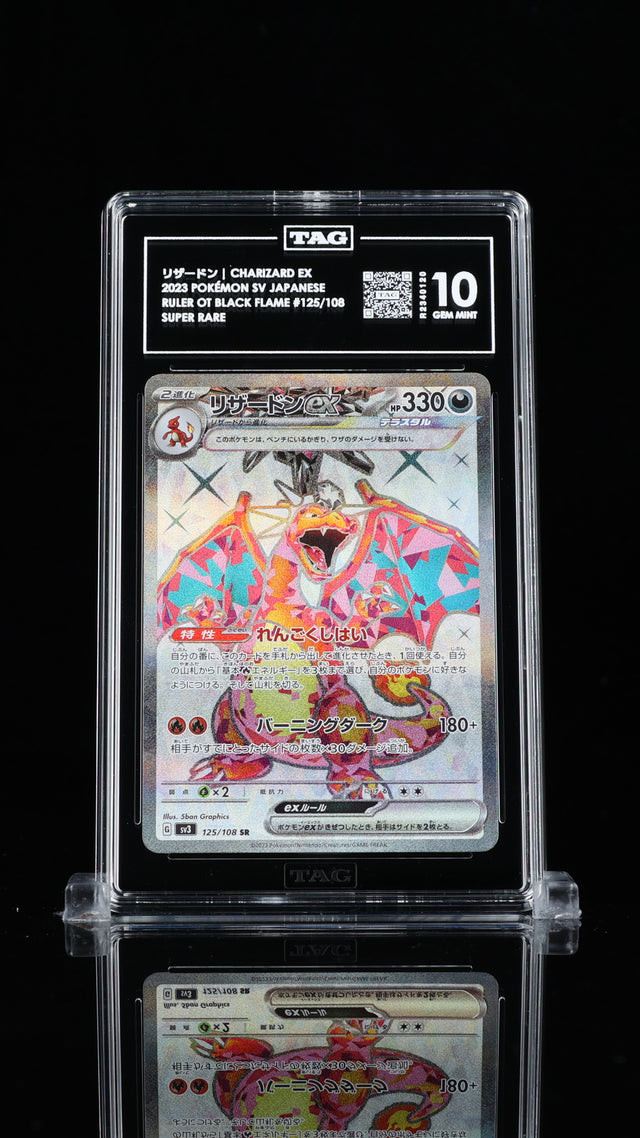 TAG 10 GEM MINT Japanese Pokemon 2023 CHARIZARD ex 125/108 SAR BLACK FLAME SV3