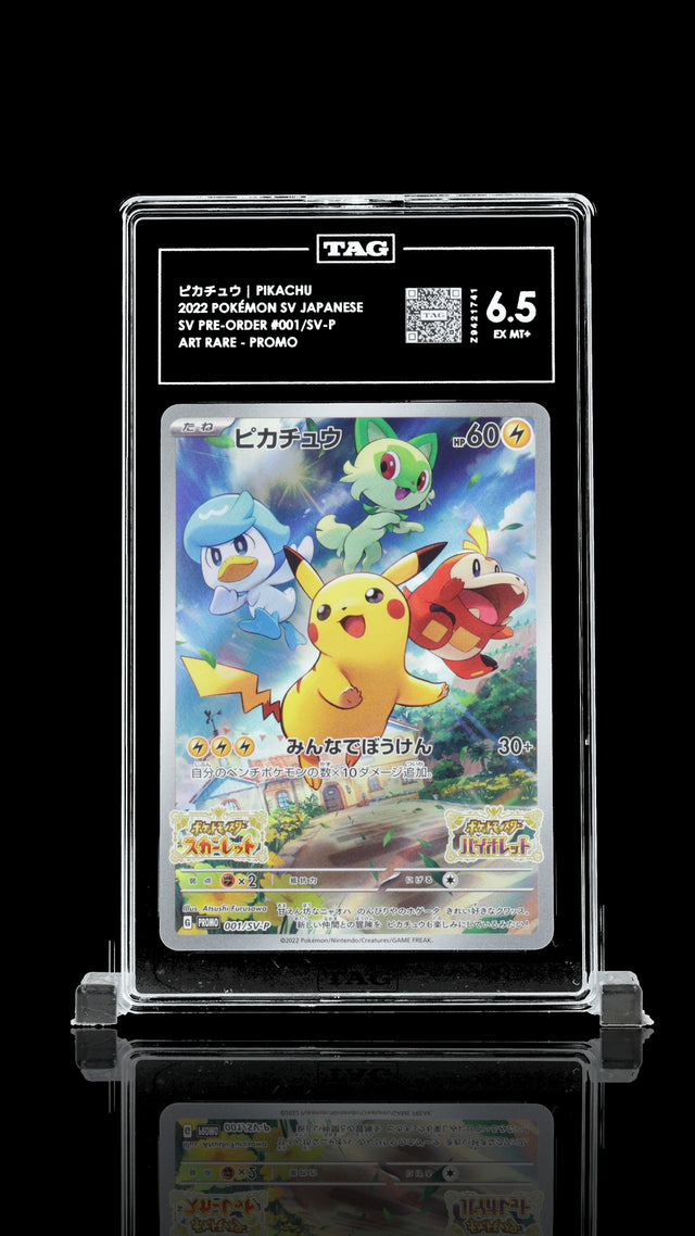 TAG 6.5 EX MT+ JAPANESE POKEMON 2022 PIKACHU 001/SV-P SCARLET/VIOLET PROMO is backordered and will ship as soon as it is back in stock.
